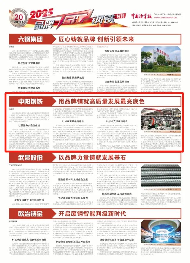 在推進(jìn)高質(zhì)量發(fā)展的過程中,中陽鋼鐵深入貫徹落實(shí)新發(fā)展理念,以“從普通到卓越”的品質(zhì)躍升為追求、以品牌建設(shè)為驅(qū)動(dòng),逐步探索出“質(zhì)量筑基、標(biāo)準(zhǔn)引領(lǐng)、技術(shù)賦能”三位一體的品牌塑造體系,不僅實(shí)現(xiàn)了產(chǎn)品質(zhì)量的全面升級(jí),還推動(dòng)了品牌效益邁向新高度。