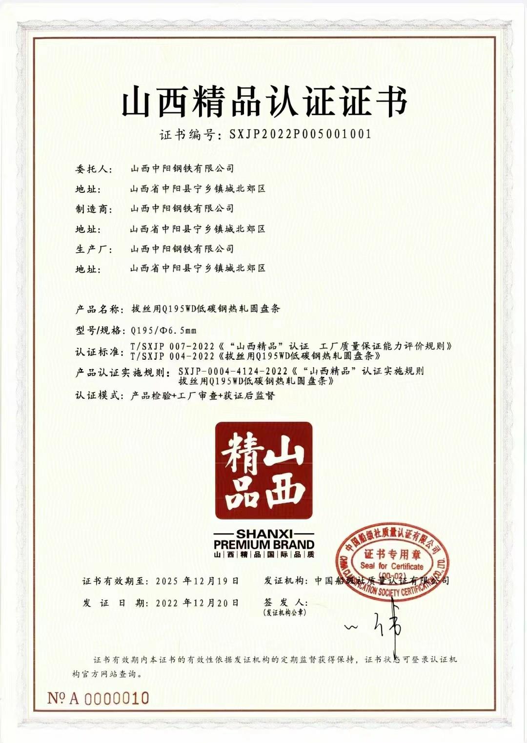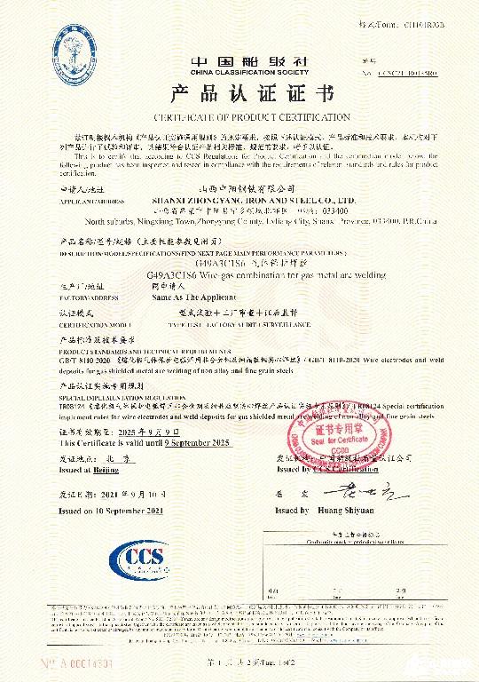 焊絲認(rèn)證證書