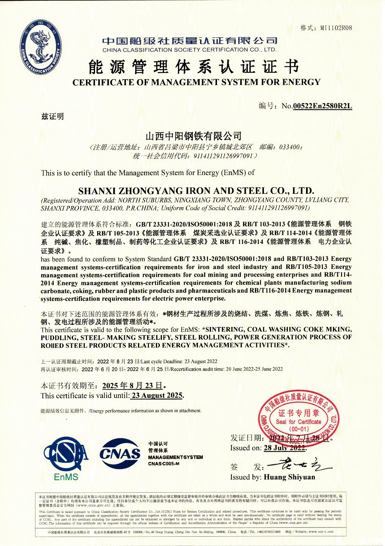 能源管理體系認(rèn)證證書