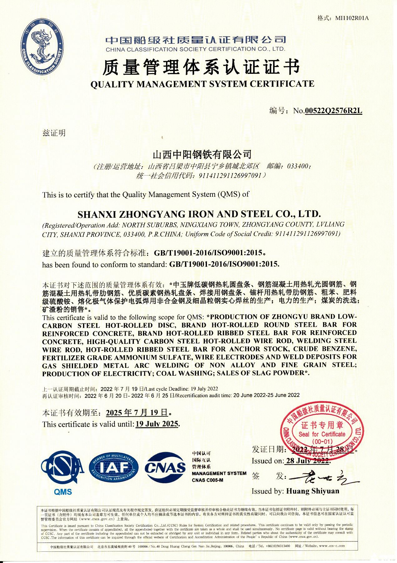 質(zhì)量管理體系認(rèn)證證書