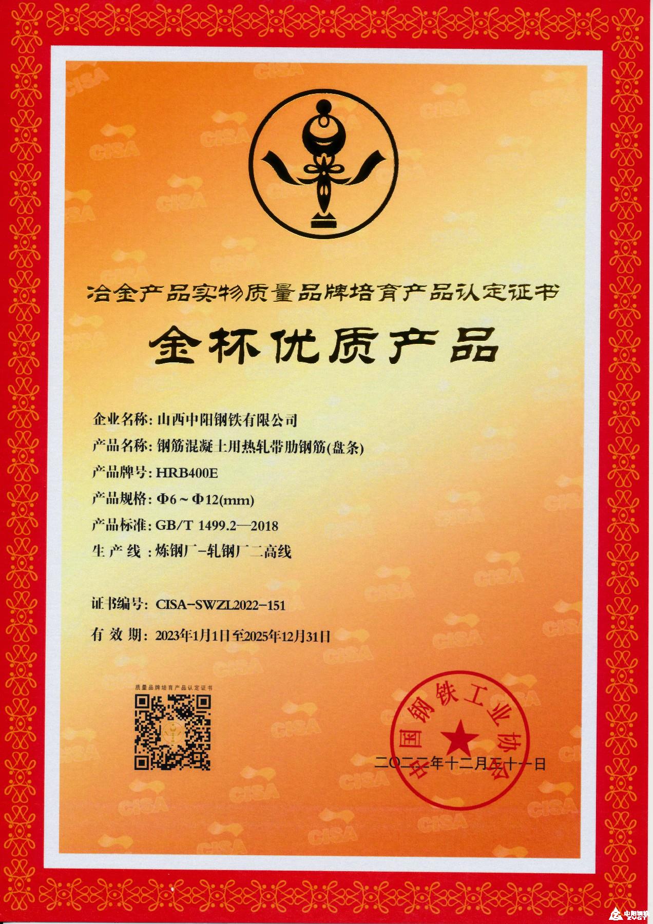 金杯優(yōu)質(zhì)產(chǎn)品-鋼筋混凝土用熱軋帶肋鋼筋(盤條)