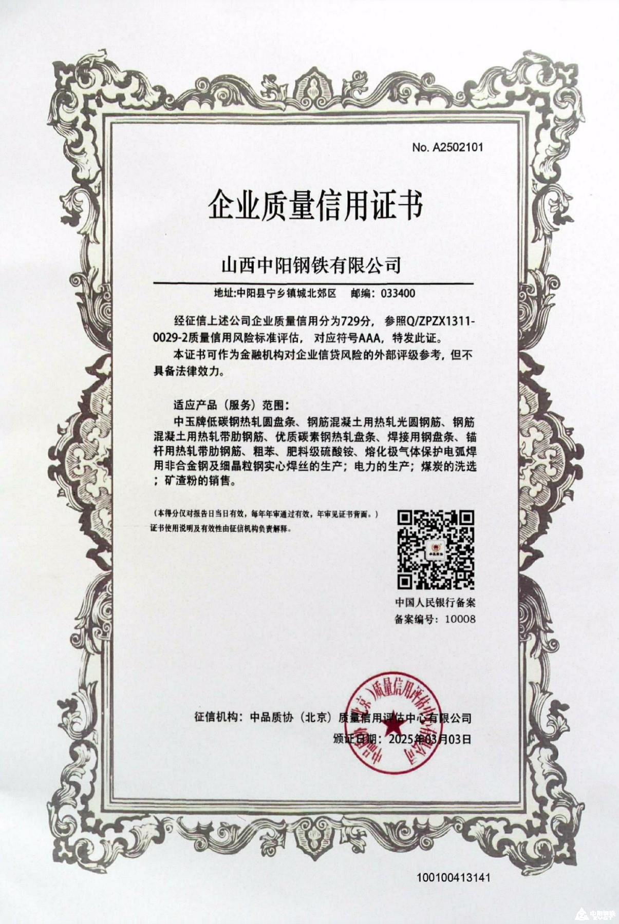 企業(yè)AAA質(zhì)量信用證書